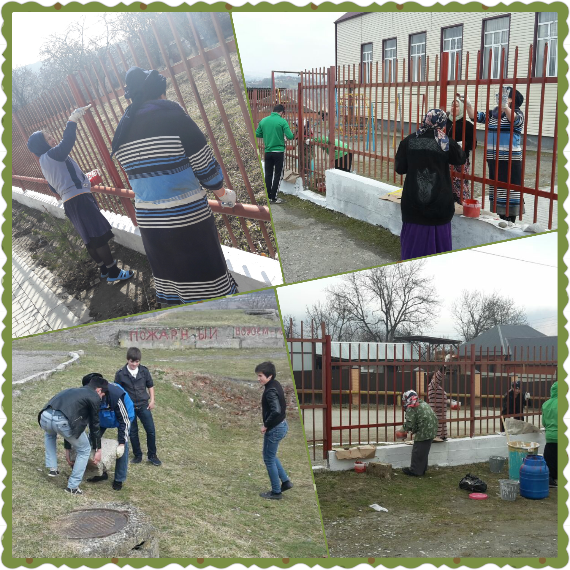 Сегодня, после окончания учебных занятий, работники нашего учреждения дружно вышли во двор, чтобы очистить школу и прилегающую к ней территорию. Покраска металлического ограждения, побелка бордюров и фундамента ограды, обновление предупреждающих щитов и противопожарных указателей, выброс мусора – это не весь перечень мероприятий, которые были проведены нами…