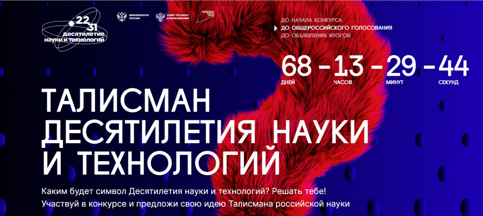 Всю подробную информацию о конкурсе можно узнать на странице талисман.наука.рф и на официальном сайте Десятилетии науки и технологий наука.рф.